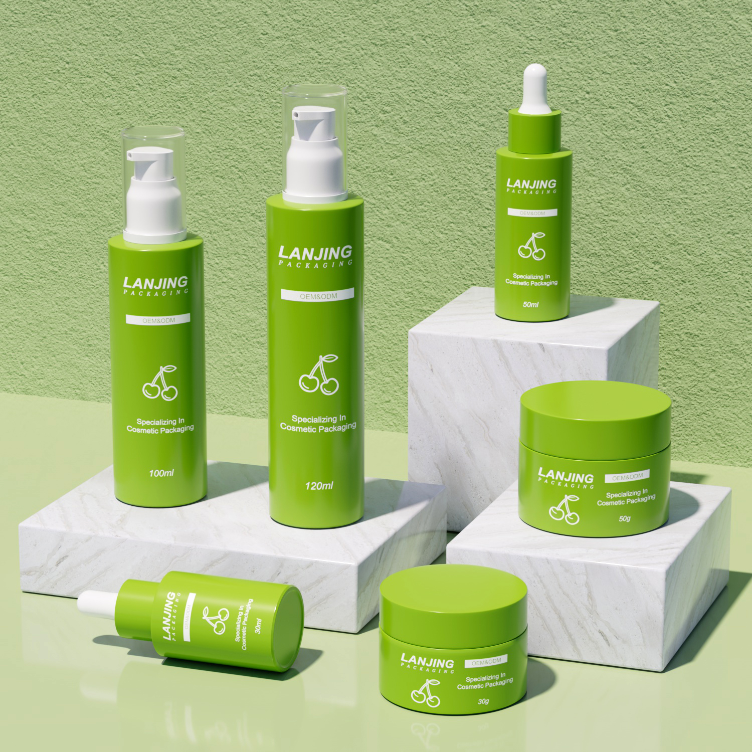 30ml 50ml 100ml Serum Cosmetic Packaging Set Skincare Glass Jar Cream Container and Lotion Pump Bottles