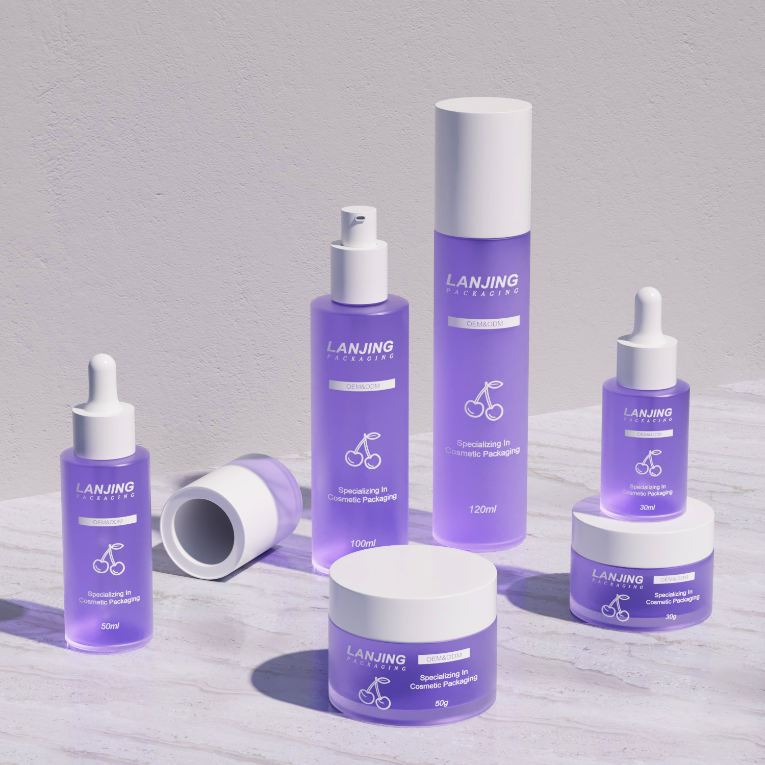 Cosmetic Glass Bottle Set for Skincare Serum Lotion Cream High End Beauty Packaging with Paper Box