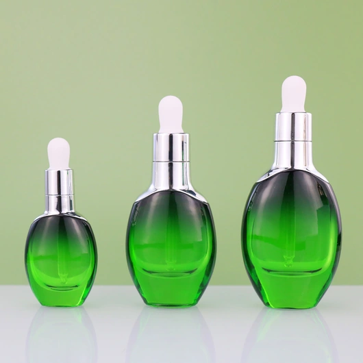 Top Selling Glass Cosmetic Bottle Set Green Slant Shoulder Is Used For Skin Care Packaging