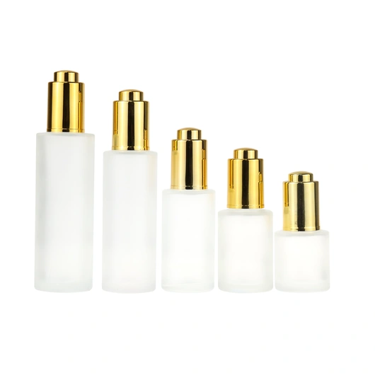 Frosted Cosmetic Glass Bottle 30ml 50ml Face Cream Bottle 15ml 20ml Lotion Bottle With Gold Pump Cap