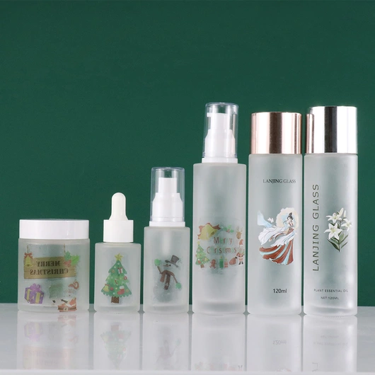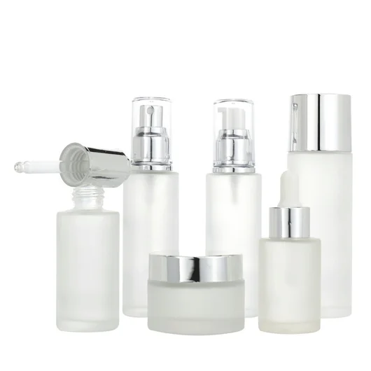 Frosted luxury glass skin care cosmetic bottle and jar packaging set