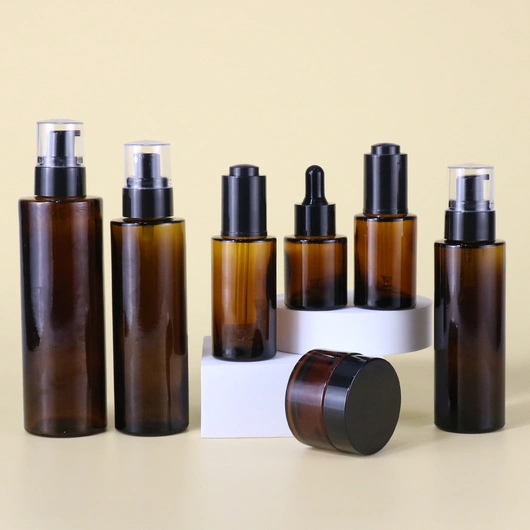 Luxury 15ml 30 60 100 120ml Slanted shoulder amber Lotion Cream Glass Jar Serum Dropper Bottle Skin CareBottle Set