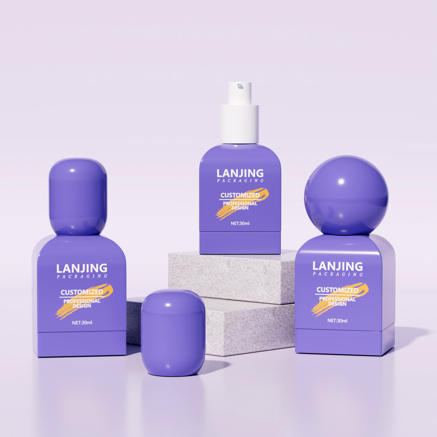 Luxury Glass square Foundation Lotion Luxury Purple Serum Matte Pump Airless Pump Bottle