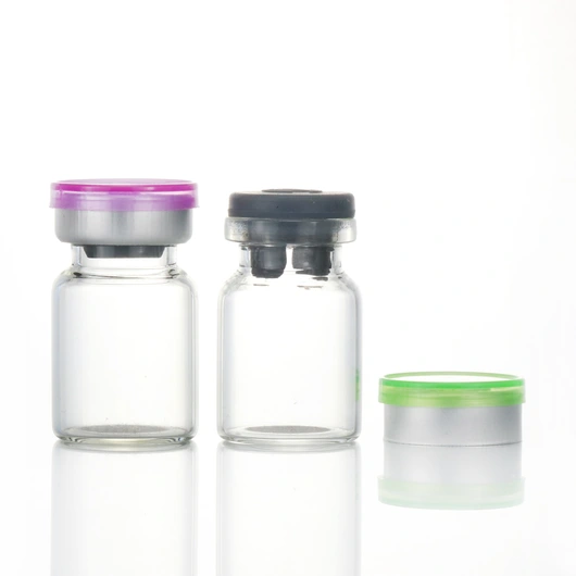 Transparent Tubular Injectable Glass Vials with colored rubber stopper